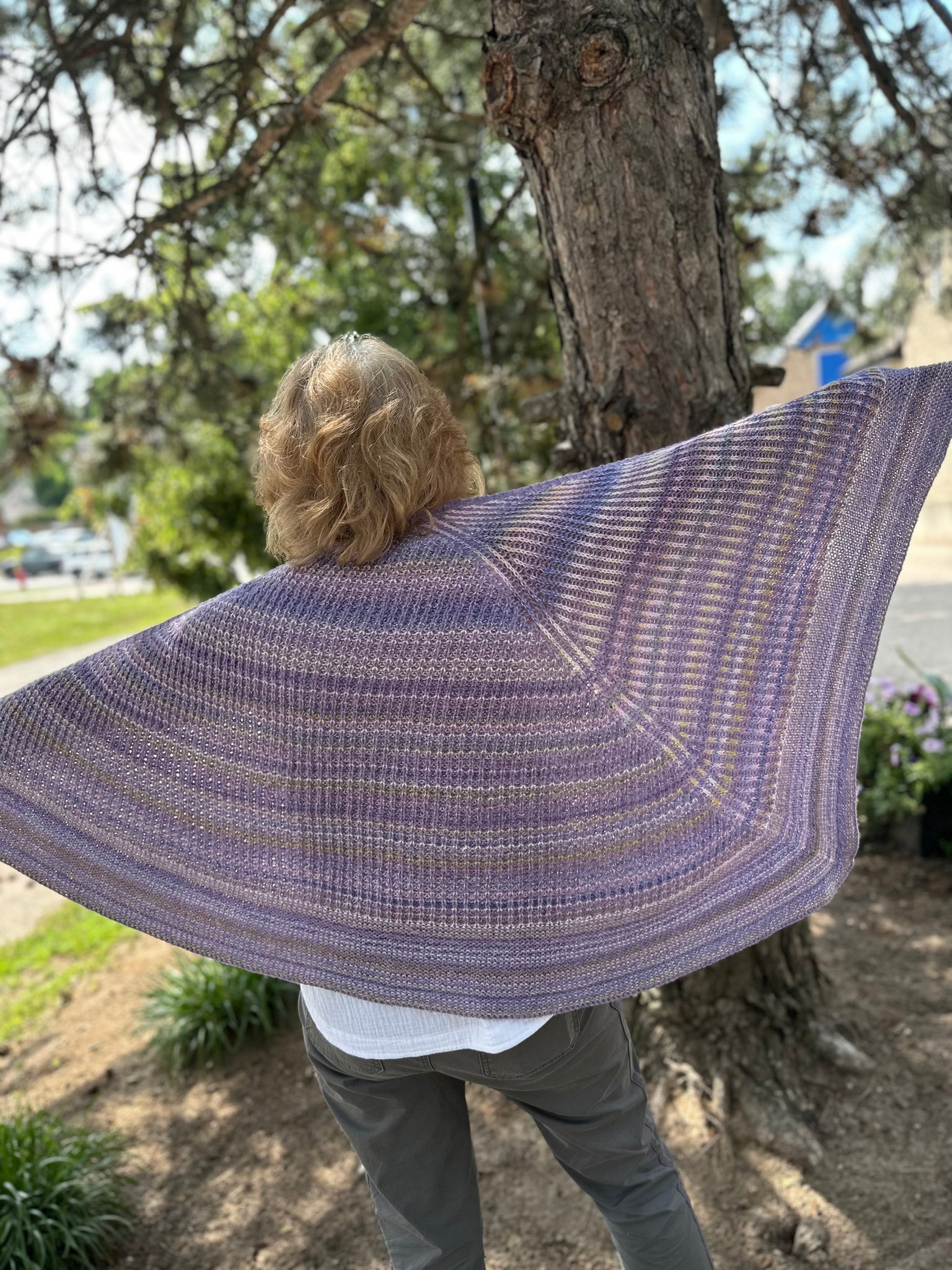 This shawl is all about texture, squish and the movement of color. Watching the colors move and change was mesmerizing, and I finished the shawl long before I was ready to, because I just could not set it down! I hope this shawl inspires you to grab some of your favorite yarns and mash them together in a shawl that begs to be wrapped around you! This shawl is knit from the top down using Brioche and Half-fishermen’s rib. It is very customizable for different yarn weights and to achieve different sizes.